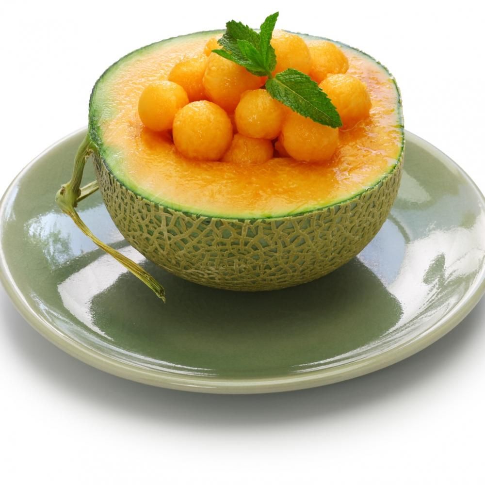 食べ方:メロンの皮が黄色くなったら食べごろです。甘い匂いがします。メロンを半分に切り種を取りラップをして
