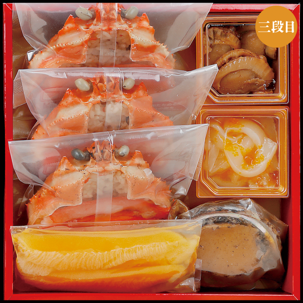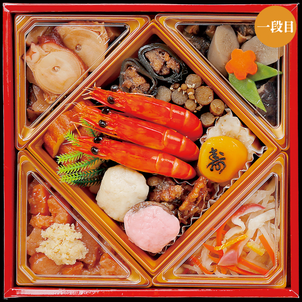 重箱を取り出し一段ずつ広げて、冷蔵庫(10゜C以下)で約24時間解凍してください。