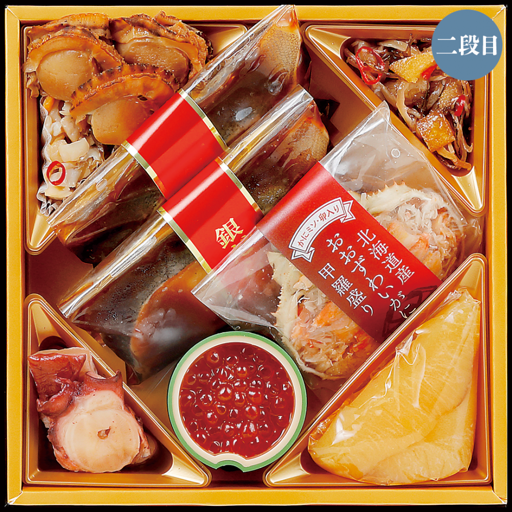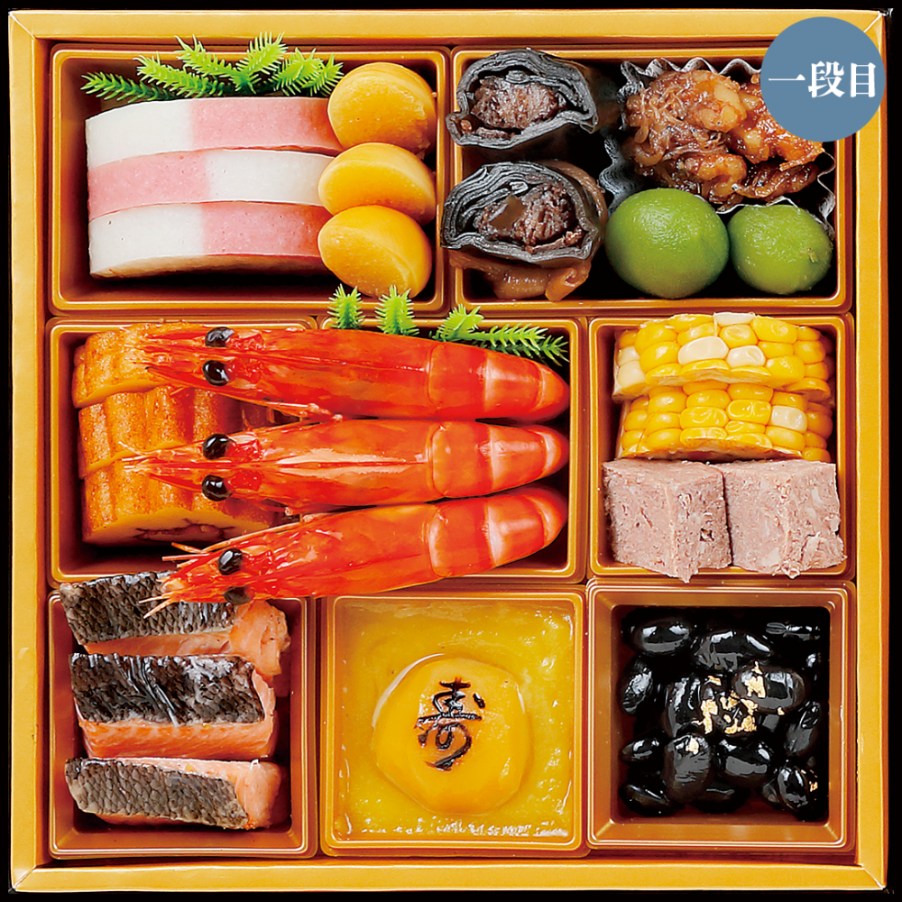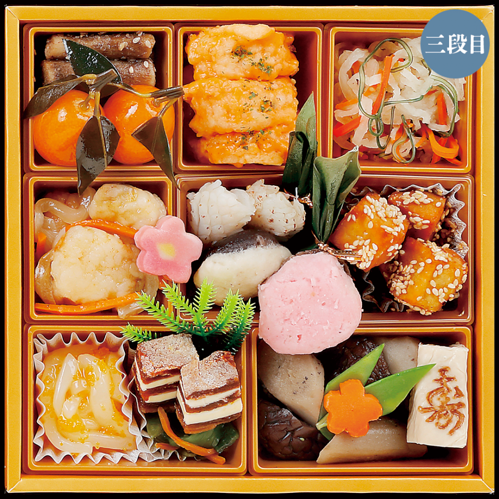 ふさわしいおせち料理として重箱に盛り込みました。