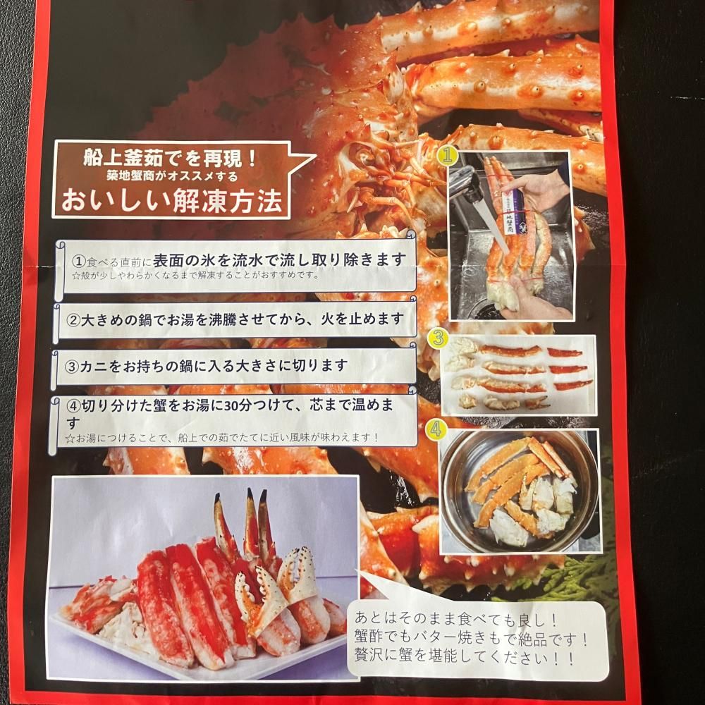 解凍後、黒変について(酸化によりカニが黒くなりますが、商品の性質上問題ございません)解凍中に召し上がるとしょっぱいので、完全に解けてからお召し上がりください。